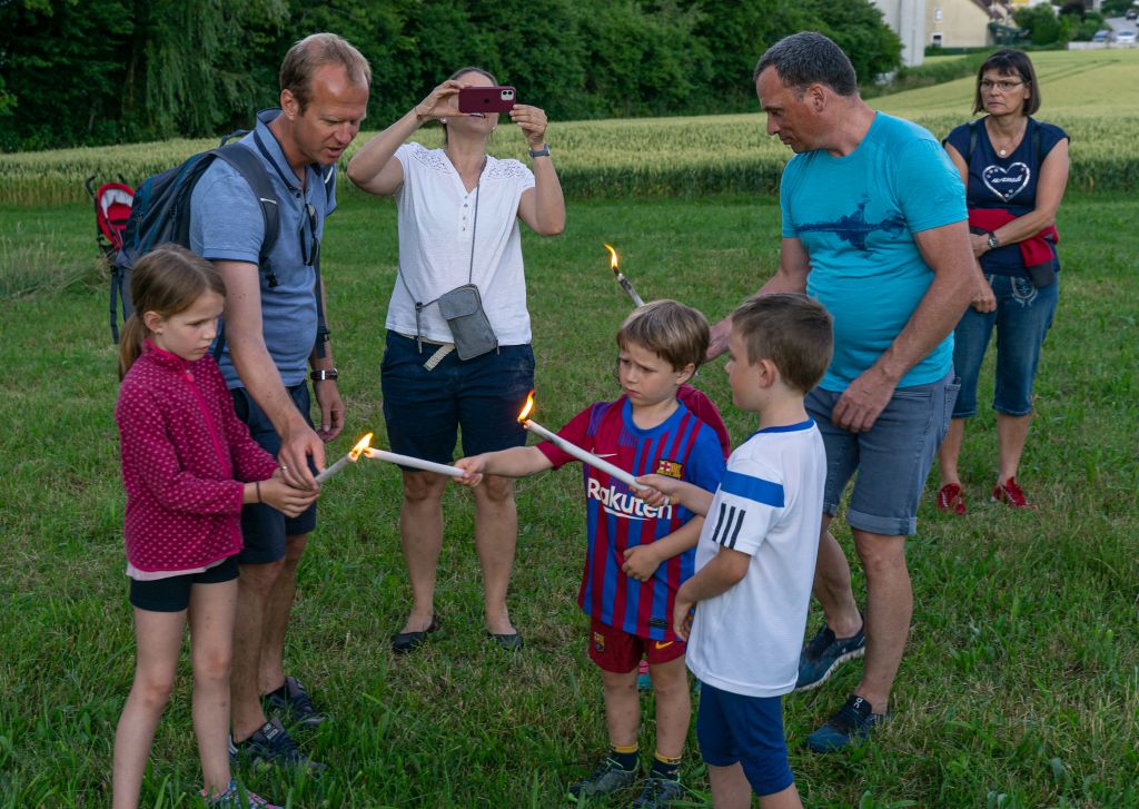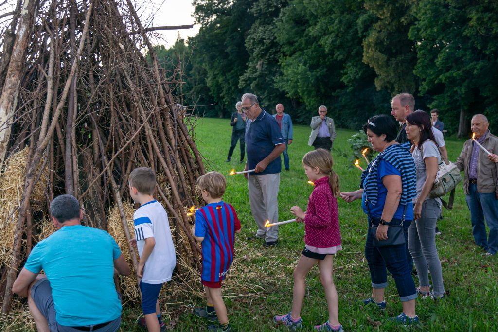wurde das Sonnwendfeuer dann mit Fackeln entzündet.