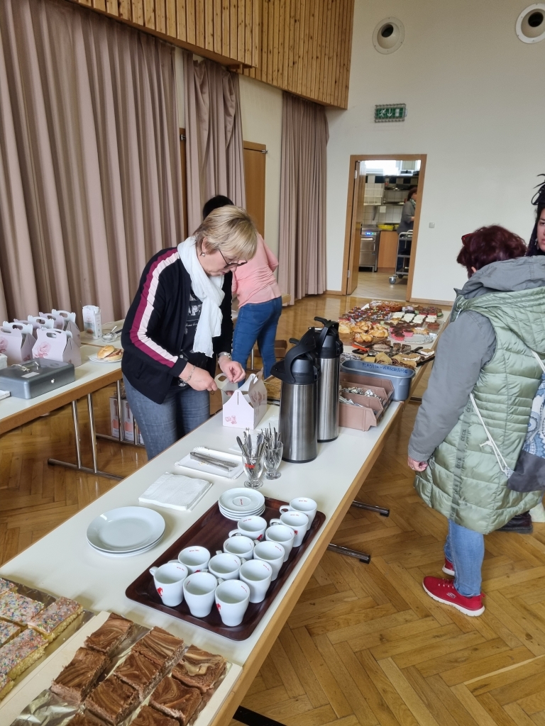 Das Kuchenbuffet hergerichtet,