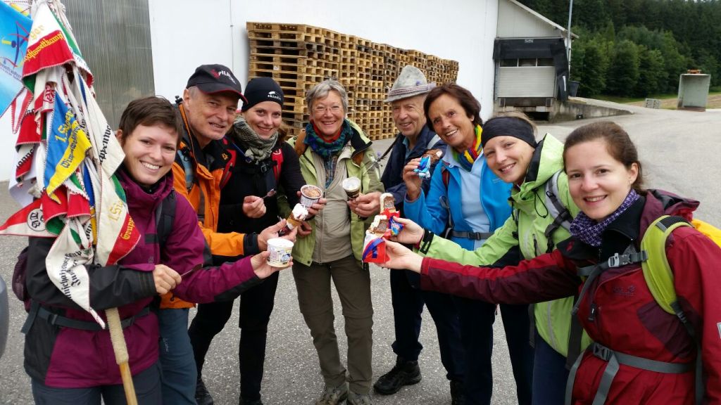 Die Wanderung führte heuer unsere fröhliche Wanderschar in 4 Tagesetappen von Bad Hall nach Fischlham, Bachmanning und Haag am Hausruck bis Tumeltsham bei Ried im Innkreis. Der 78km lange Fußweg war geprägt von interessanten Besichtigungen (Kapelle im Schloß Bernau, Landesausstellung in Lambach), netten Begegnungen (spontane Einkehr und Gespräche mit der Bevölkerung), wunderschönen Wanderstrecken (moosgedeckte Wege, Weg der Sinne, historische Plätze) und wetterbedingten Herausforderungen (starker Regen Sprühregen, Wind, Hitze). 16 Wanderfreudige waren mit von der Partie und 9 haben den gesamten Weg zurückgelegt.