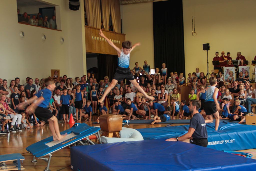 den tollen Sprünge der 3 Burschenriegen über den Bock und durch 2 Reifen,