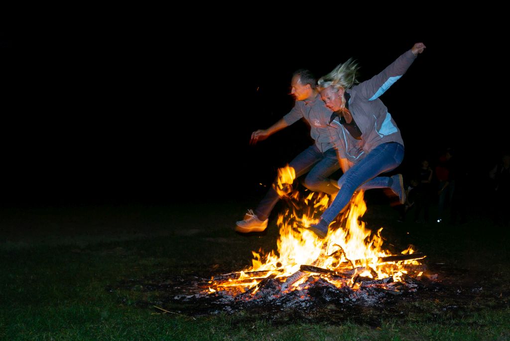 Ein paar Mutige bewiesen sich danach beim Feuerspringen.