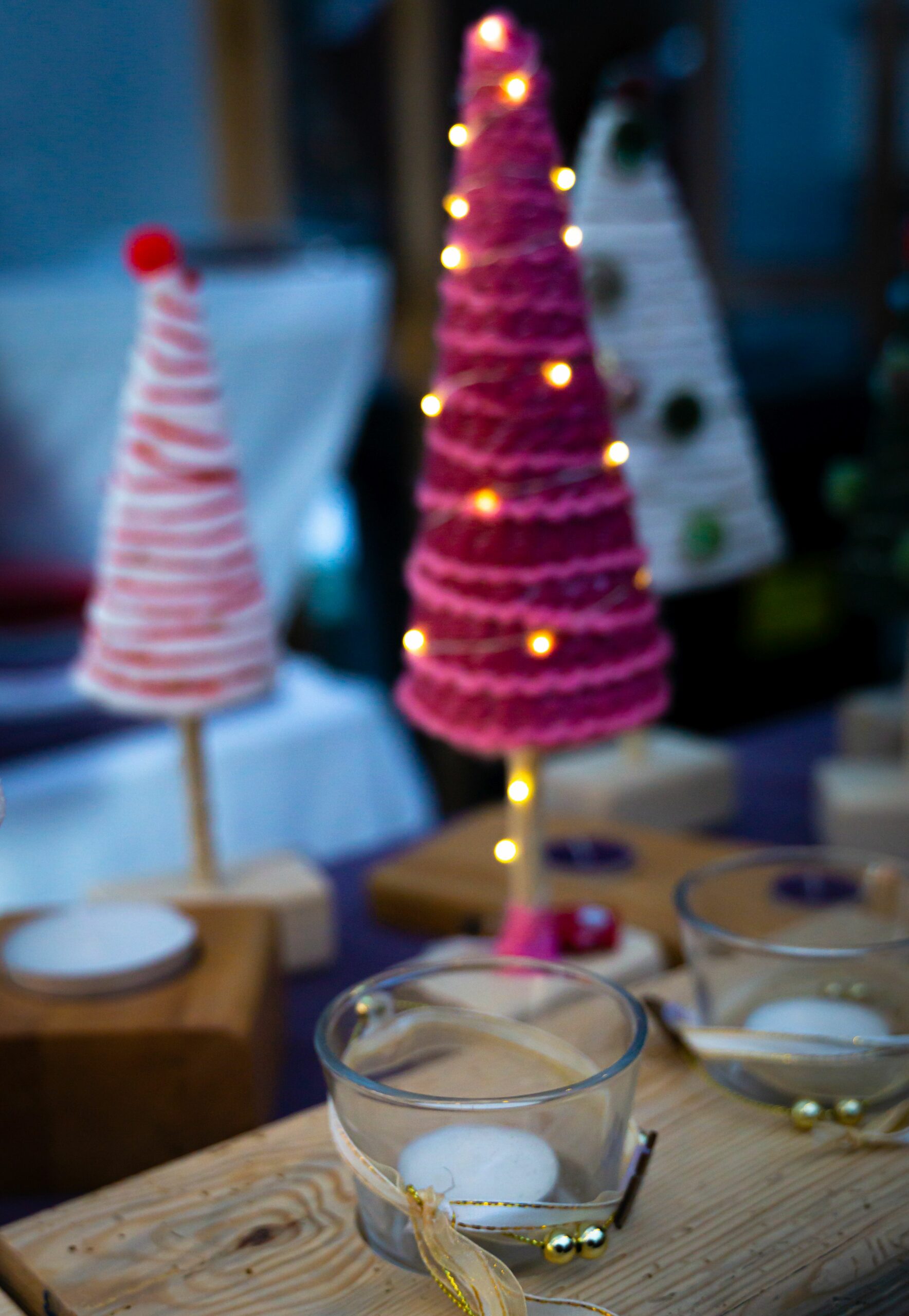 Deko Artikel wie kleine beleuchtete Weihnachtsbäume usw. selber hergestellt.